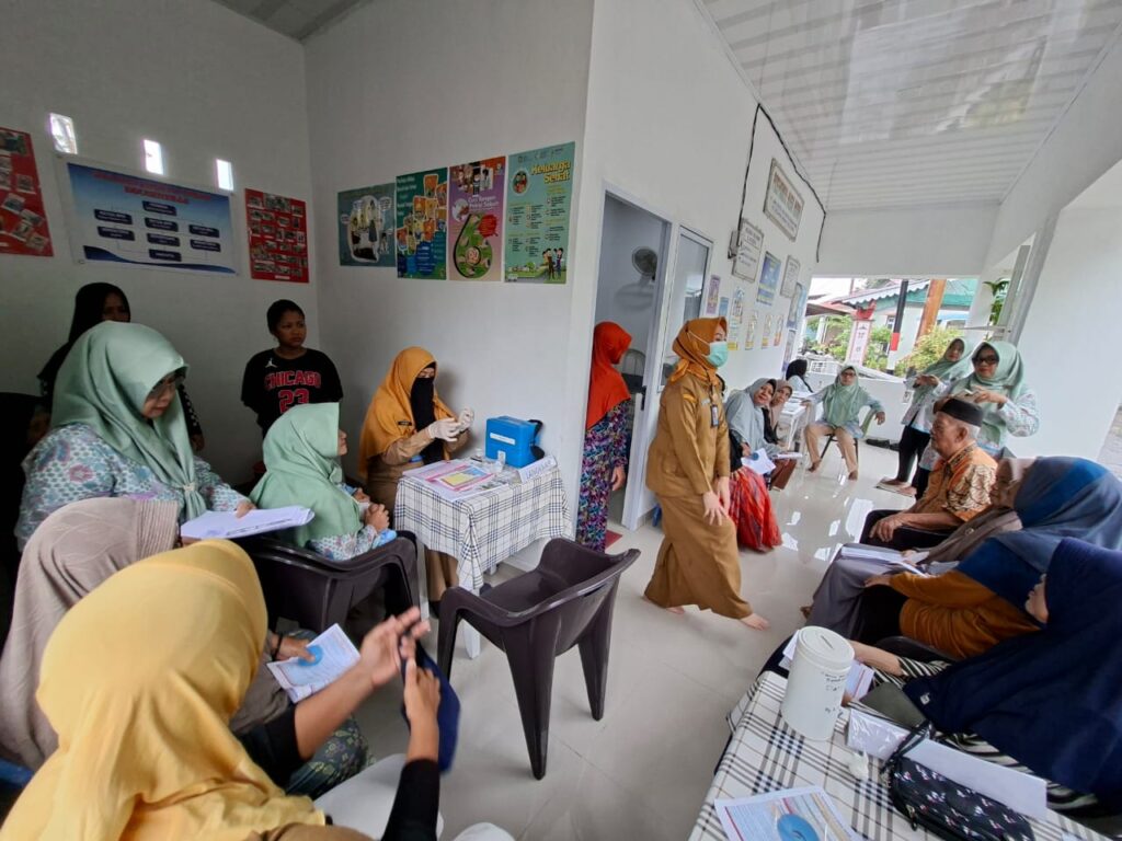 Layanan yang diberikan meliputi imunisasi, pemeriksaan ibu hamil, skrining kesehatan terpadu seperti cek tekanan darah dan gula darah, serta edukasi gizi seimbang dan pola hidup sehat.