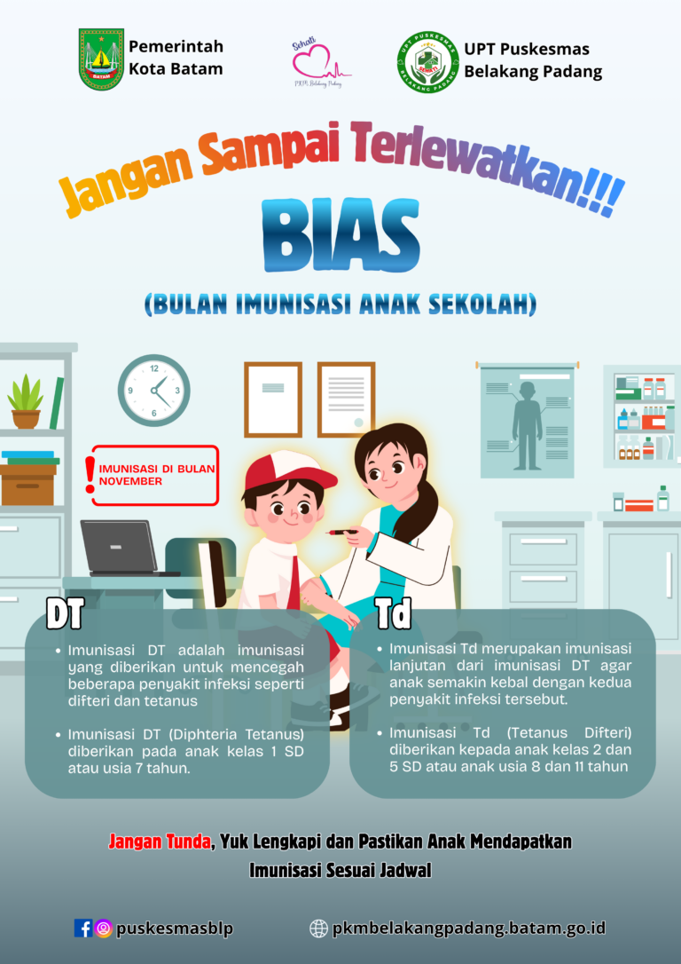 Hallo Sahabat Sehat UPT Puskesmas Belakang Padang Jangan Sampai Terlewatkan !!!"BIAS ( Bulan Imunisasi Anak Sekolah )" BIAS ( Bulan...