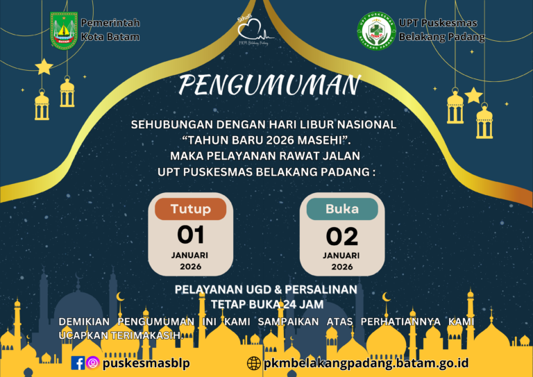 Attention Please…!!!Hallo Sahabat Sehat UPT Puskesmas Belakang Padang Sehubungan Dengan Hari Libur Nasional“Tahun Baru 2026 Masehi”.Maka Pelayanan Rawat JalanUPT Puskesmas...