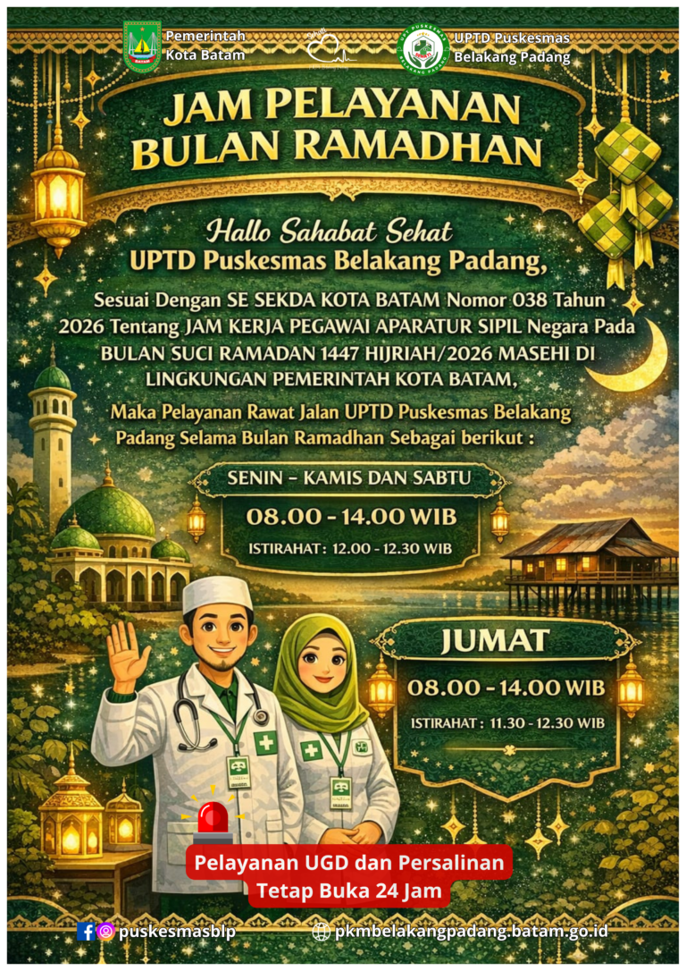 Assalamu'alaikum Warahmatullahi Wabarakatuh Hallo Sahabat Sehat UPTD Puskesmas Belakang Padang 👋 Sesuai dengan SE SEKDA Kota Batam Nomor 038 Tahun...