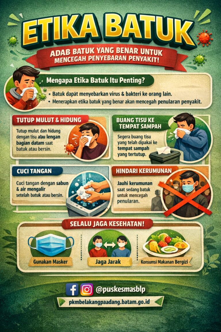 Hallo Sahabat Sehat UPTD Puskesmas Belakang π€§ ETIKA BATUK: LANGKAH SEDERHANA UNTUK MELINDUNGI SESAMA Batuk dan bersin merupakan cara alami...