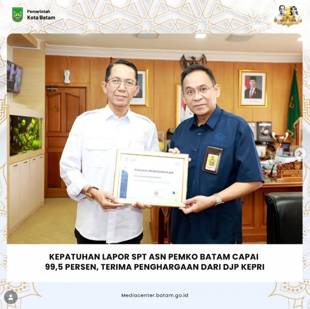 Diskominfo Batam - Pemerintah Kota (Pemko) Batam menerima penghargaan dari Direktorat Jenderal Pajak wilayah Kepulauan Riau atas tingginya tingkat kepatuhan...
